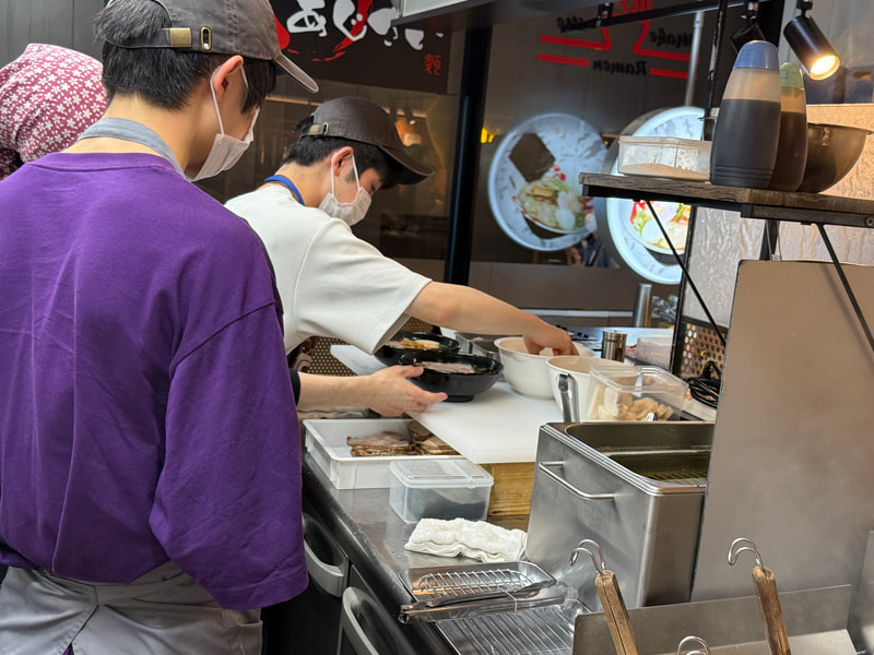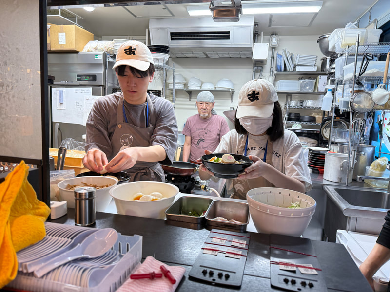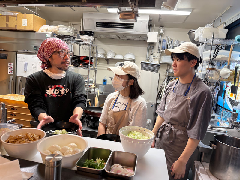 ・実際に経験してみて、ラーメンを作るのは、思ったよりも繊細な作業だと感じました。お客様をご案内する際、「〇名様です」と大きな声で言うことで、他のスタッフにも伝わり、次の動きがスムーズにでき、自分たちのカフェでも実践できると感じました。
